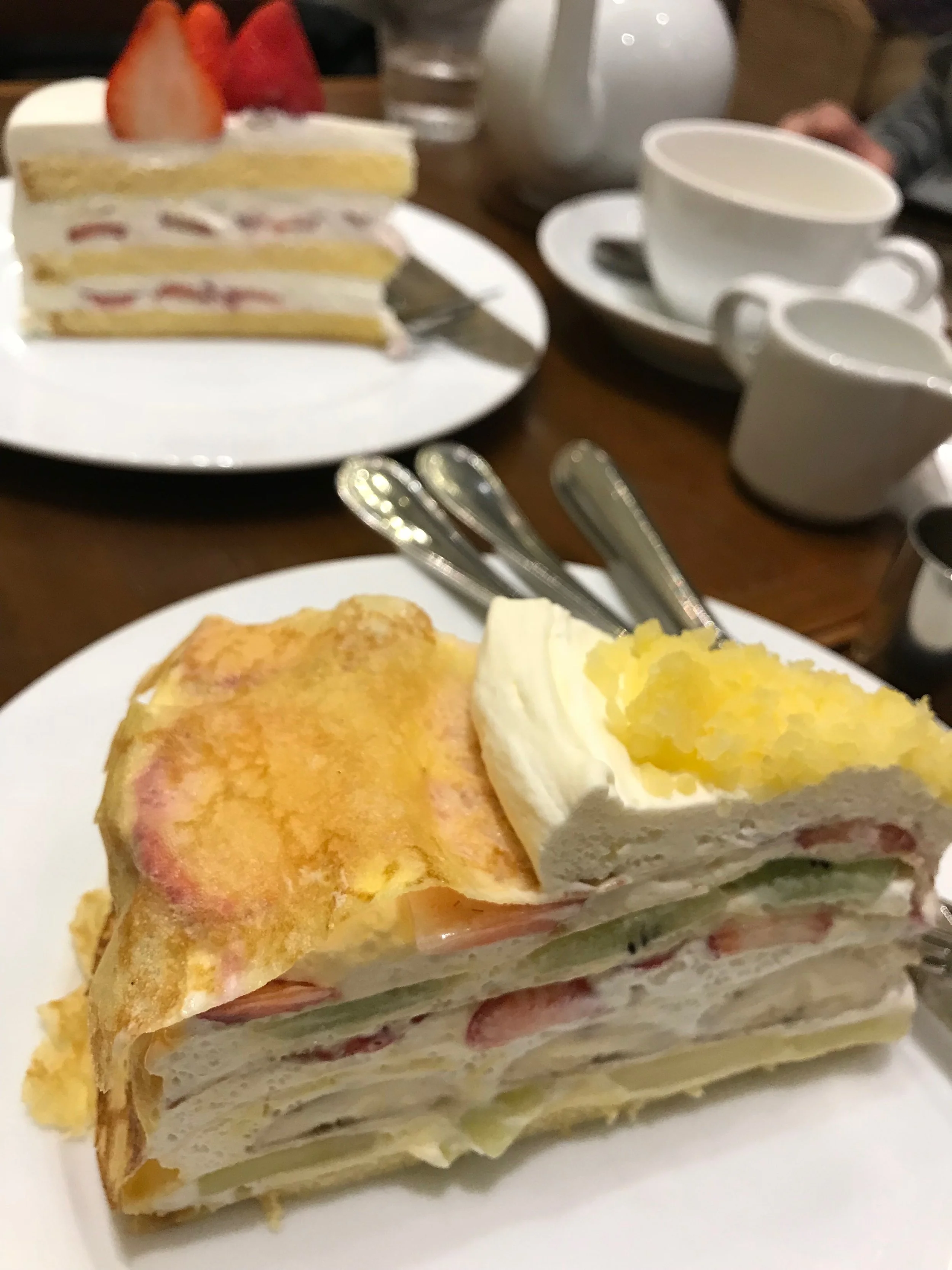 It was strawberry season so we got the strawberry shortcake (man, do the Japanese kill the shortcake game!) and this new fave, a layered crepe fruit cake at Harbs Cafe.