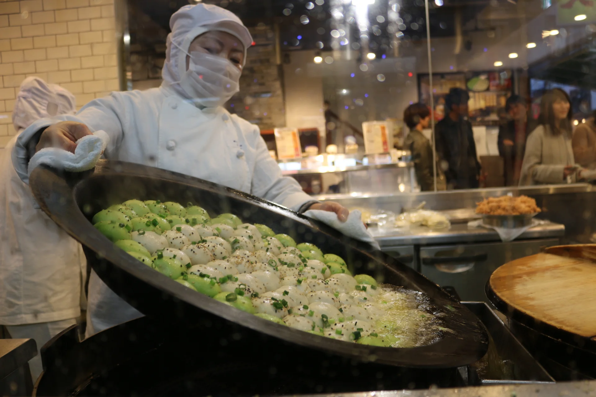 The line-up at Yokohama Chinatown for Shen Jiang Bao (deep-fried soup dumplings)
