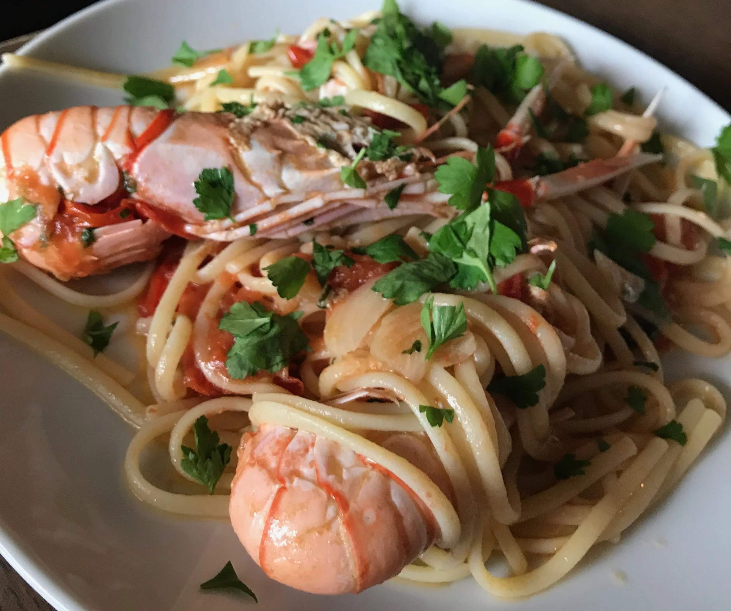 Shrimp curry with the best naan (we ordered two more baskets because it was perfection)