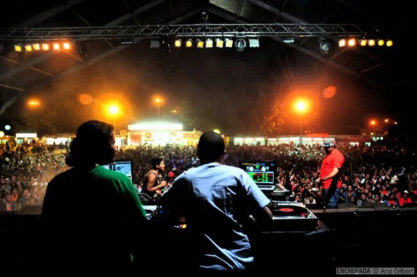 While in Lisbon, I paid Buraka Som Sistema a visit during the second night of the Optimus Alive festival. Lil’ John, Riot, Conductor, and MC Kalaf were curating the Enchufada night (their label's namesake as well as Portuguese for "plugged in") on the clubbing stage, which included a supremely hot and fun performance by the group themselves, in addition to sets by Diplo and CarteBlanche. Before their thumping show (also the day of Riot's birthday), we chatted in their dressing room about the follow-up to their critically acclaimed album, Black Diamond.